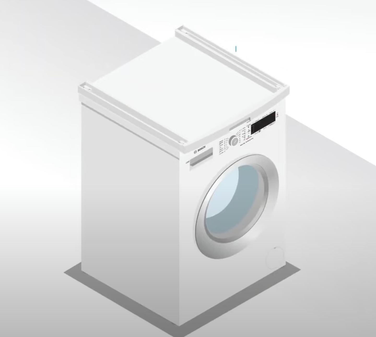 - Bước 1: Đặt bộ phụ kiện kết nối lên máy giặt và căn chỉnh vị trí.