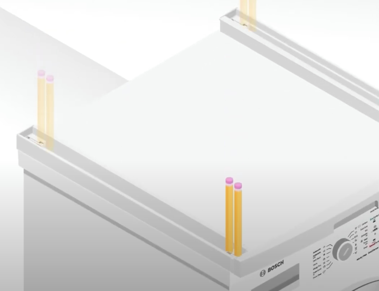 - Bước 2: Đánh dấu các lỗ cần khoan theo vị trí đã đặt bộ phụ kiện trên máy giặt. Khoan các lỗ vào mặt trên của máy giặt rồi lắp đặt và cố định bộ phụ kiện lên mặt trên của máy giặt bằng đinh vít.