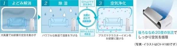 - Sharp CV-N120-W công nghệ hút Block kết hợp luồng không khí mạnh, hút ẩm mạnh mẽ cùng với tác động của các ion plasma để ngăn chặn sự phát triển của vi khuẩn nấm mốc