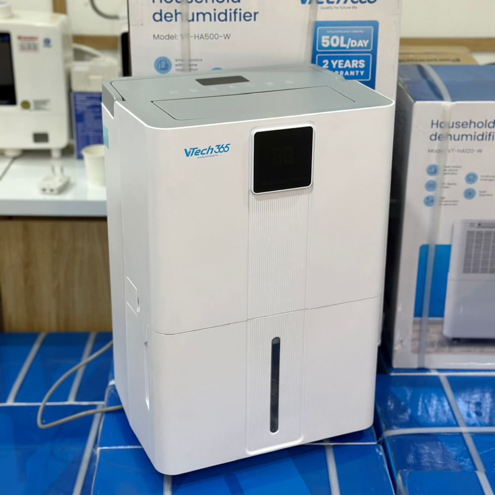 - Với công suất hút ẩm 35L/ngày, VTech365 VT-HA350-W mang lại không gian sống khô thoáng, sạch sẽ và an toàn, đồng thời đảm bảo sự tiện nghi nhờ công nghệ hiện đại.