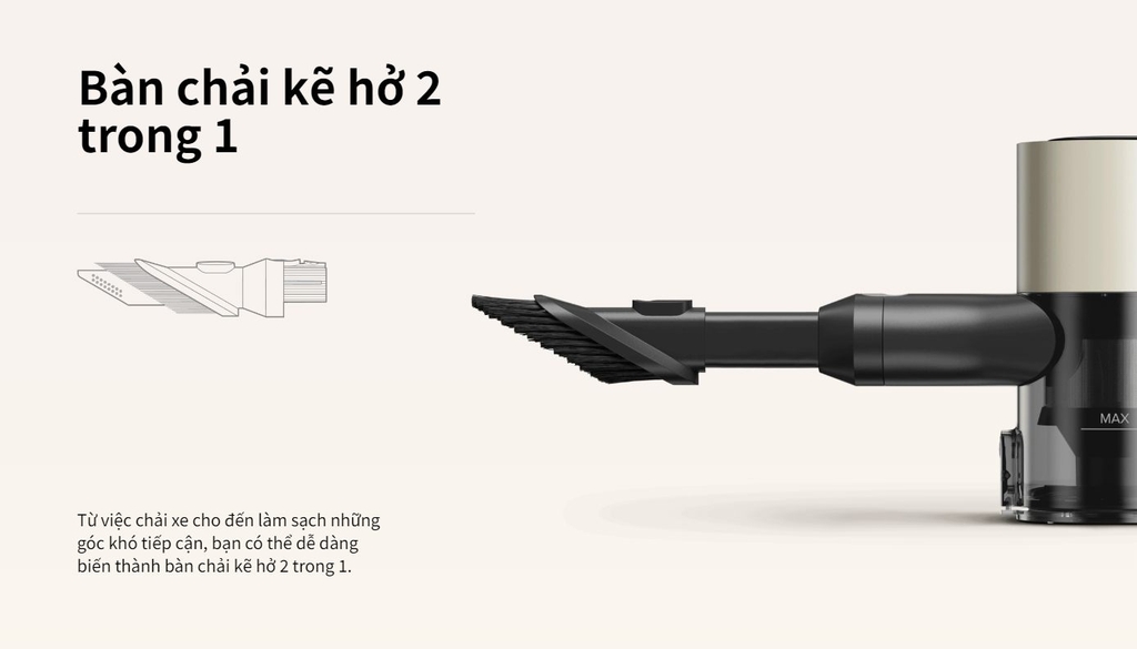 - Chổi 2 trong 1 cho khe hẹp, bề mặt khó tiếp cận.