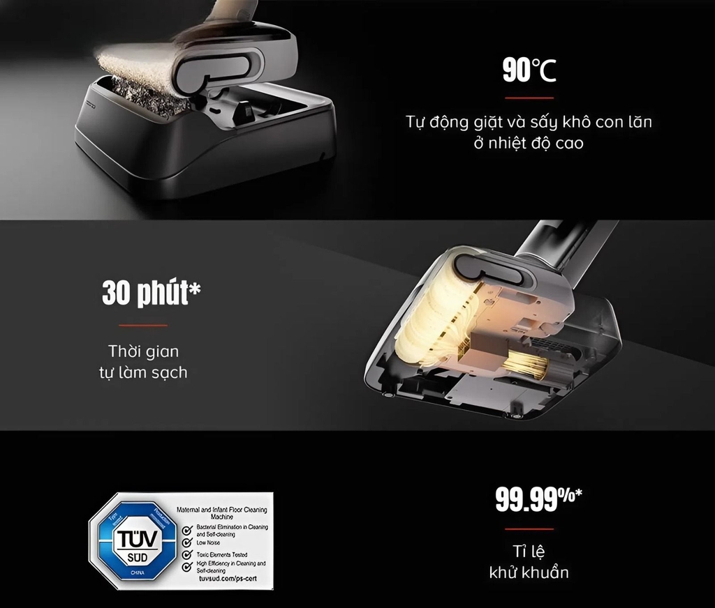 3. Tự động giặt và sấy con lăn bằng nước nóng 90°C