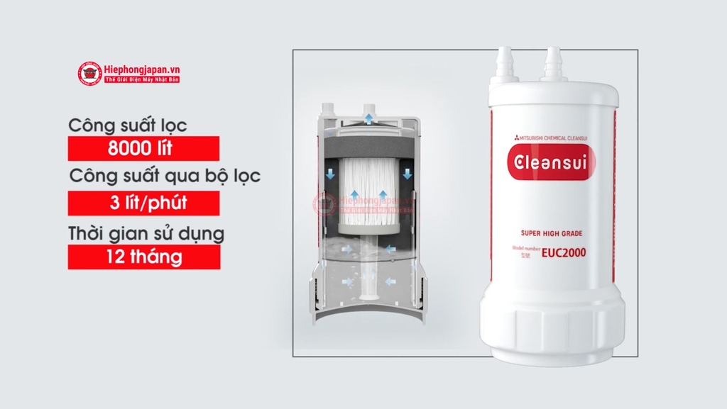 - Thay lõi lọc EUC2000 sau 12 tháng hoặc 8.000 lít nước, tùy điều kiện sử dụng.