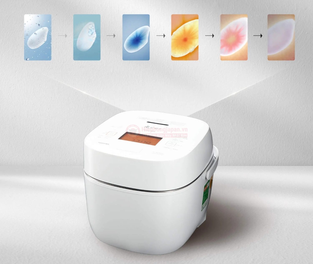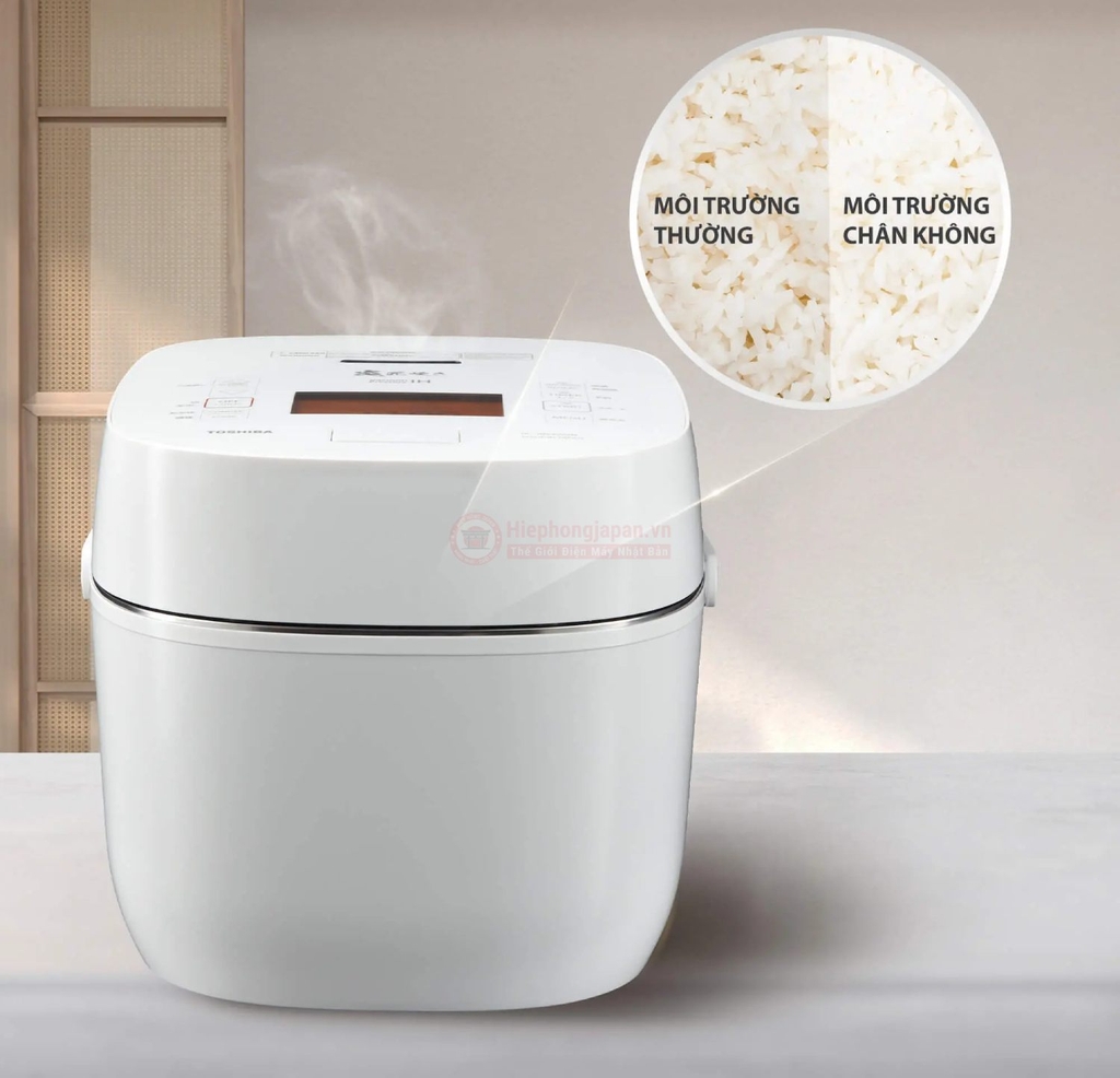 Toshiba trang bị công nghệ Vacuum Keep Warm giúp loại bỏ không khí trong lòng nồi, ngăn quá trình oxy hóa và kiểm soát độ ẩm. Nhờ đó, cơm luôn giữ được màu trắng sáng, hương vị và độ mềm như mới nấu.