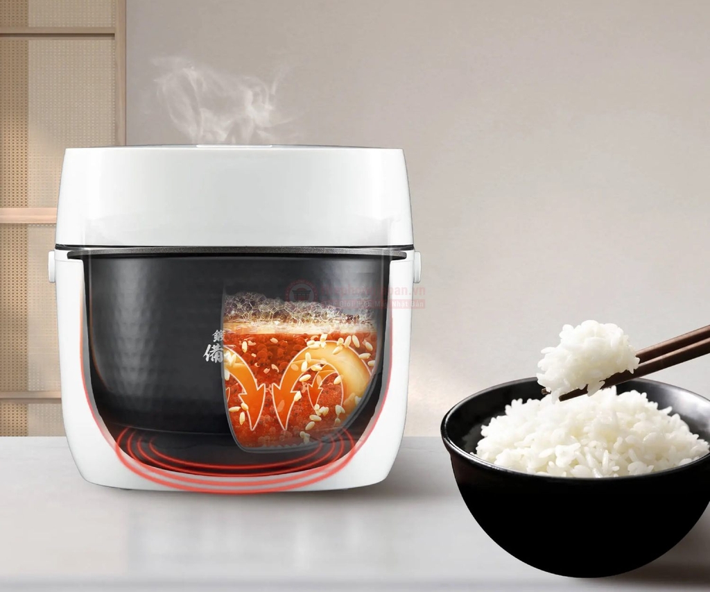 Ngoài ra, nhờ hiệu ứng dẫn nhiệt tối ưu, nhiệt lượng lan tỏa đồng đều đến từng hạt gạo, đảm bảo cơm chín kỹ từ trong ra ngoài mà không bị khô hay vón cục.
