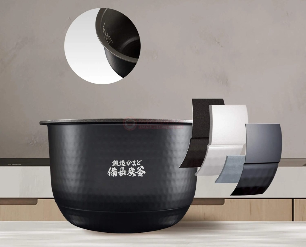 - Lòng nồi Binchotan KAMADO độc quyền cho nồi cơm điện Toshiba Nhật Bản được chế tạo với đáy dày 7mm và góc bo tròn 60°, tối ưu khả năng truyền và giữ nhiệt.