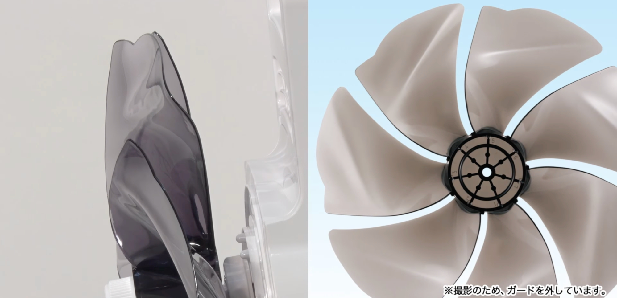 PJ-R3DS mô phỏng cách quạt hình dạng cánh bướm khi di chuyển, sử dụng sự co và vỗ của cánh của loài bướm khi bay hàng nghìn km trên biển, mang lại làn gió êm ái và thoải mái.